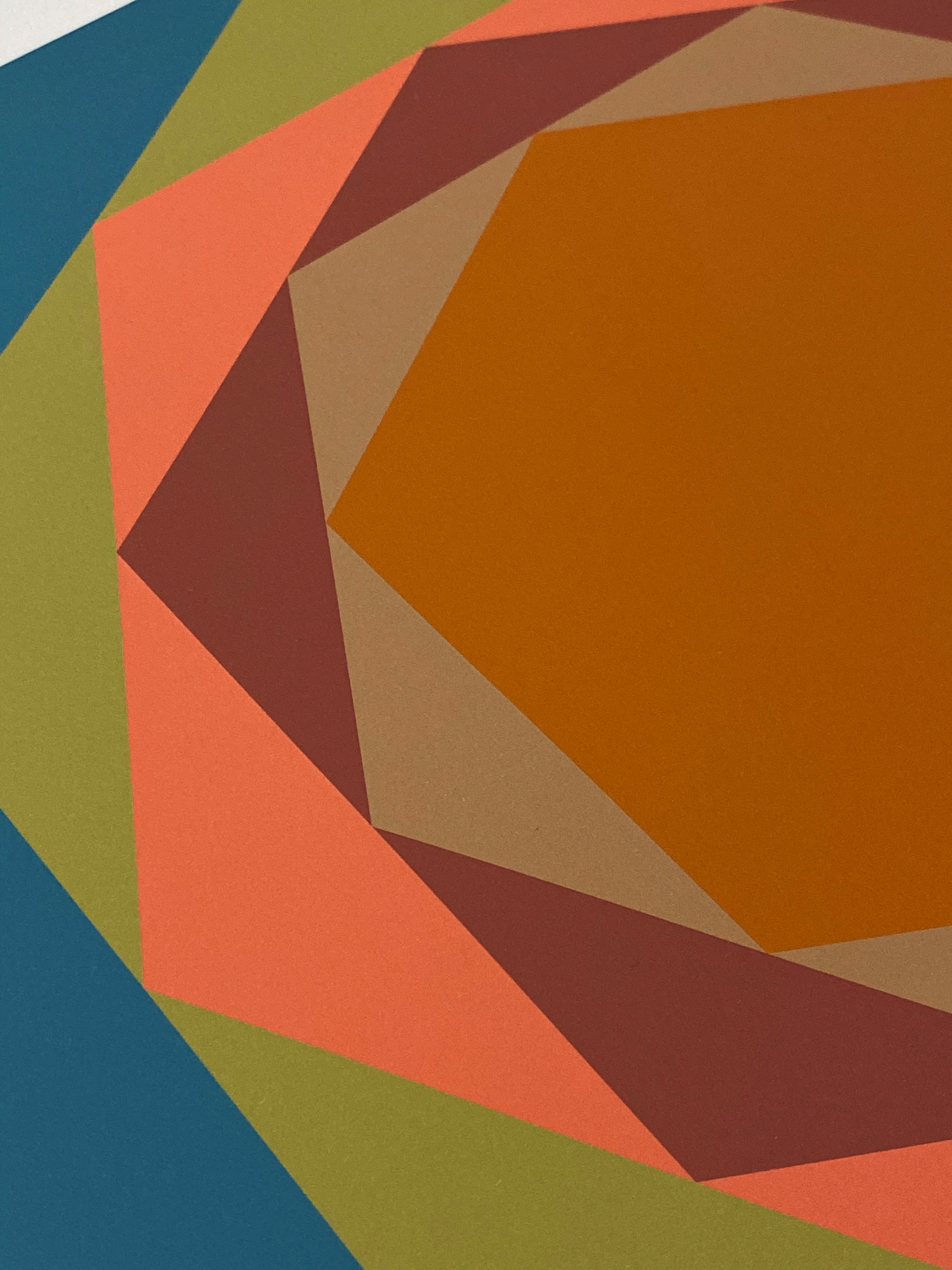 The hexagon is widely considered to be a sacred shape often associated with the geometry of the natural world and is considered to be a symbol of harmony and balance. It is seen in the construction of the bee's honeycomb hive, and in the make-up of their eyes. The shape can be seen in crystals, snowflakes and in natural rock formations such as the Giants Causeway, in Ireland. It is seen on Saturn's north pole as a cloud formation and, back-down-to-Earth, the Benzene Ring (six carbon atoms joined to form a hexagon) is the basic component of many organic compounds. The number six is also considered to be a sacred number (and being the number of sides to the hexagon).