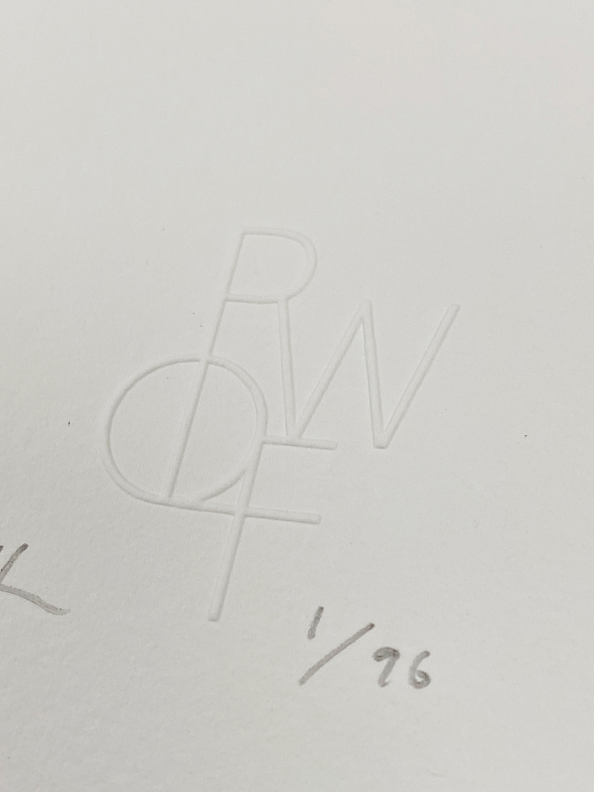 Numbered and signed with a blind-embossed monogram stamp for authentication