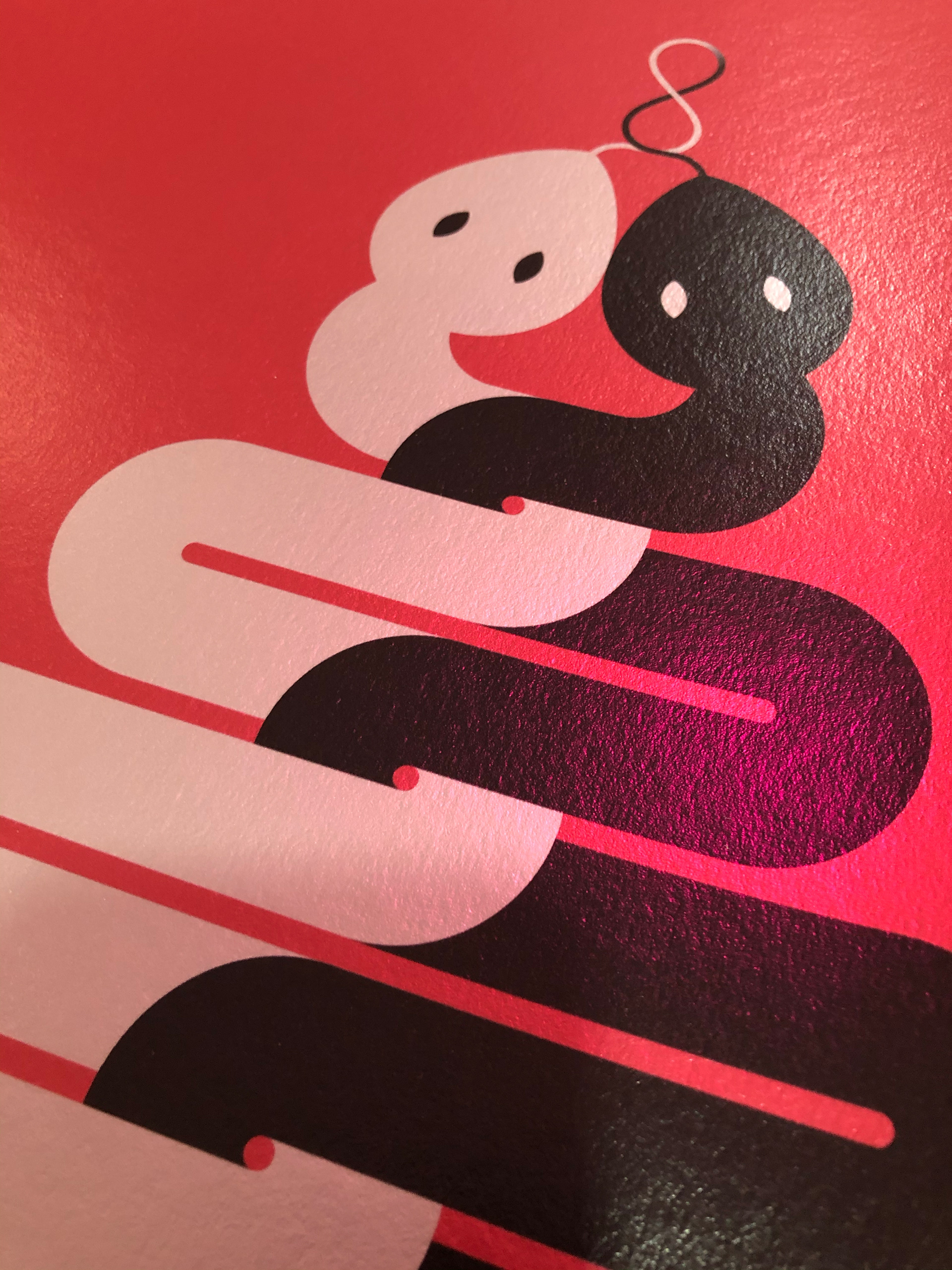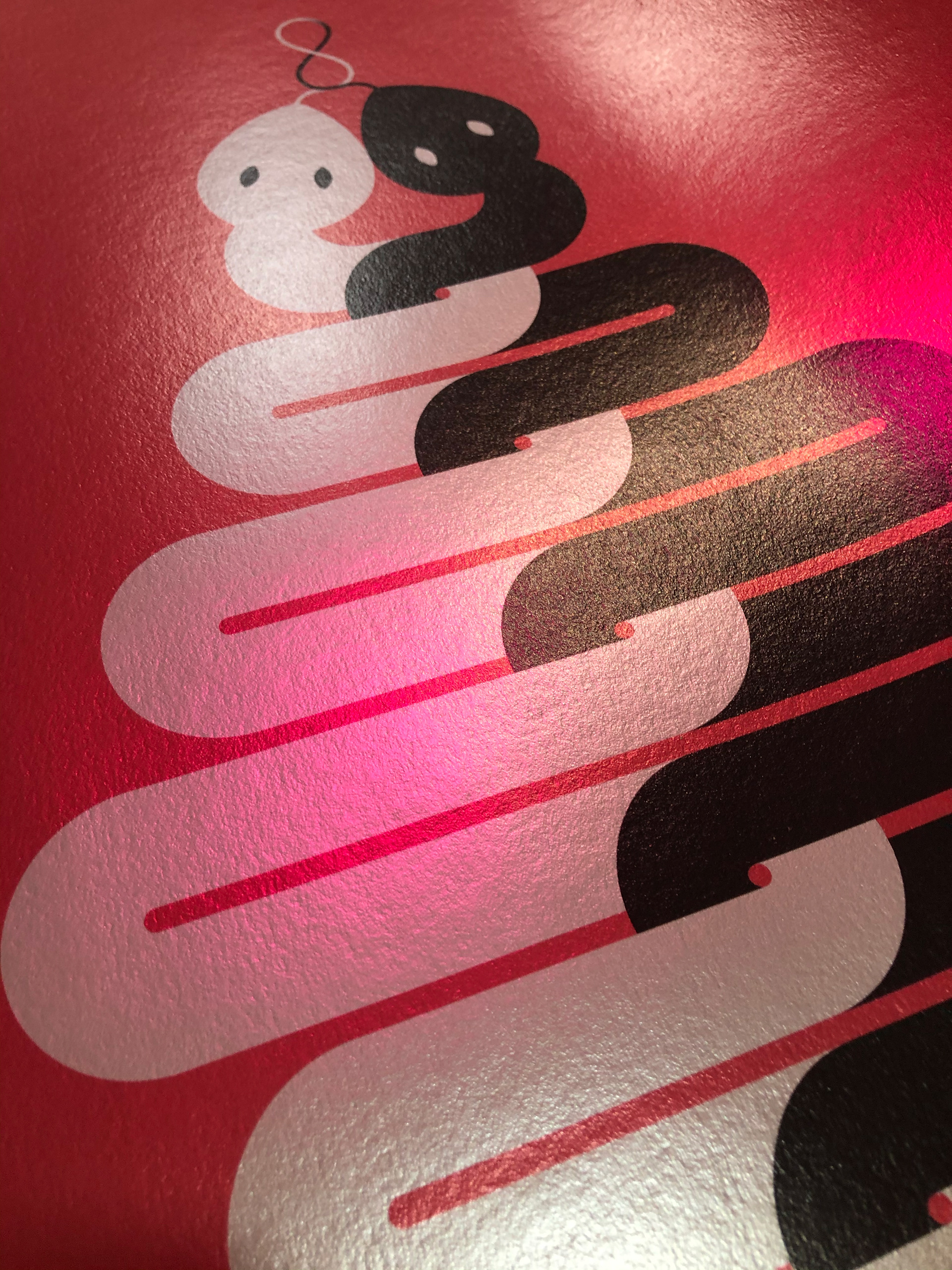 This series of artworks show two serpents entwined representing the duality of the masculine and the feminine. They are connected at their tails and tongues by the Lemniscate (the sacred infinity symbol) making them 'one' – woven as a continual form that is never-ending and infinite.
