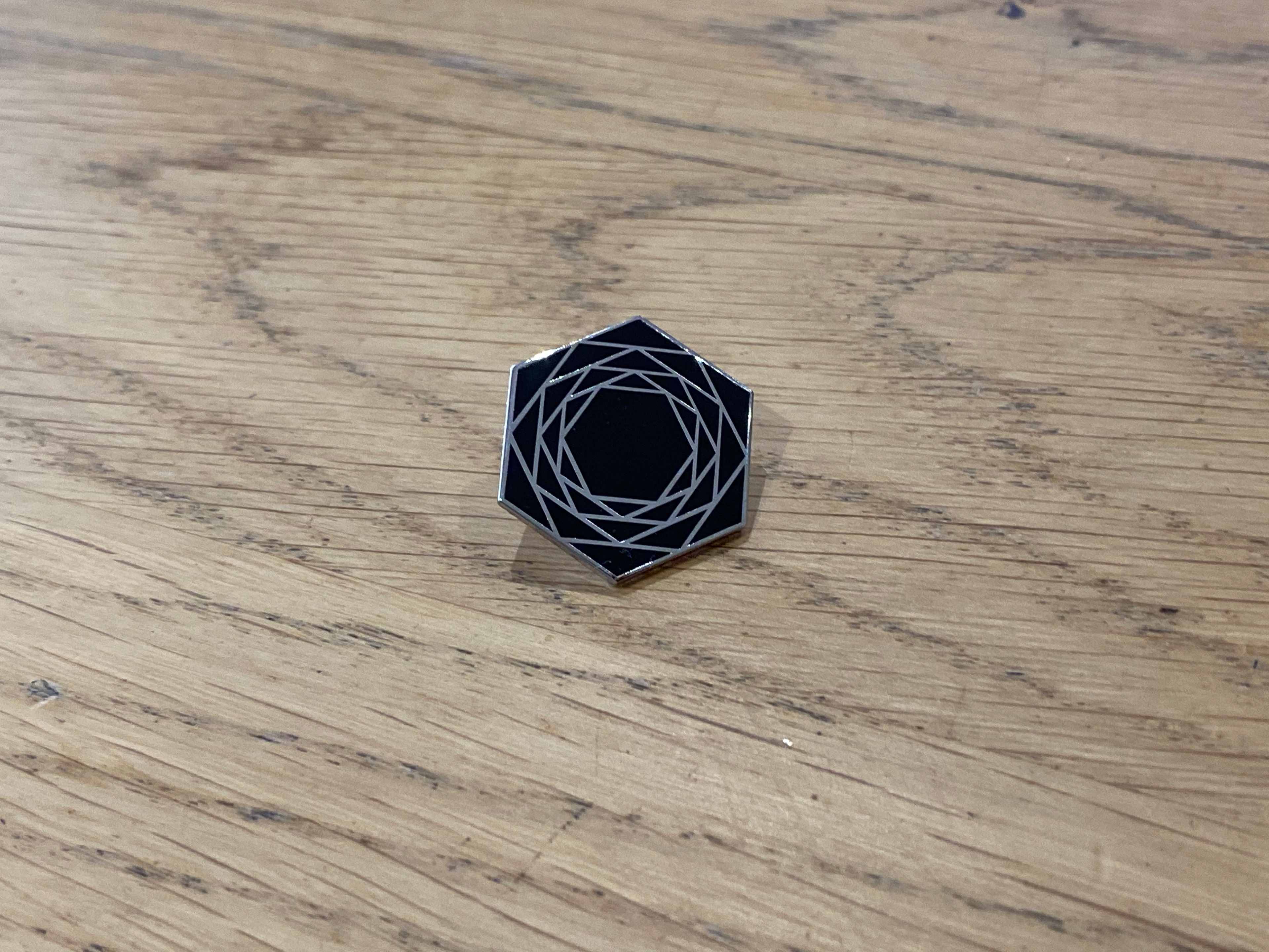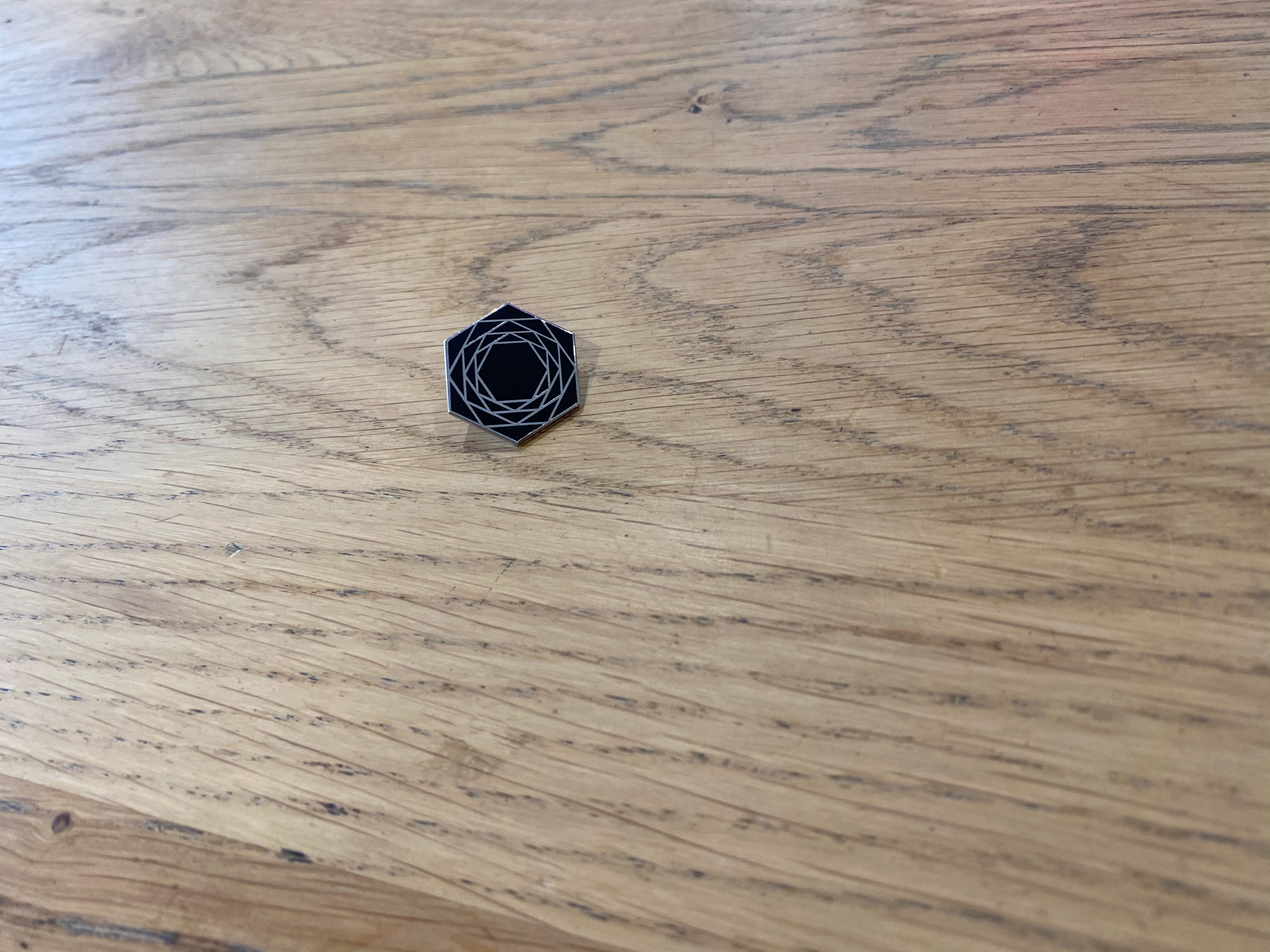 One colour cloisonné enamel pin – black infill with metal outline – 25mm high (point-to-point).